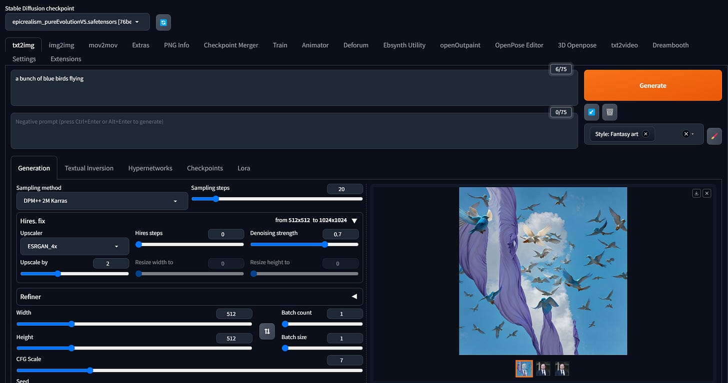 Here are some screenshots of my settings, along with a sample of the usual Elon Musk reference. You only need to upload the image, then write a prompt to match what you’re looking for. In this example it was “a bunch of blue birds flying”: